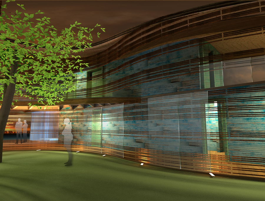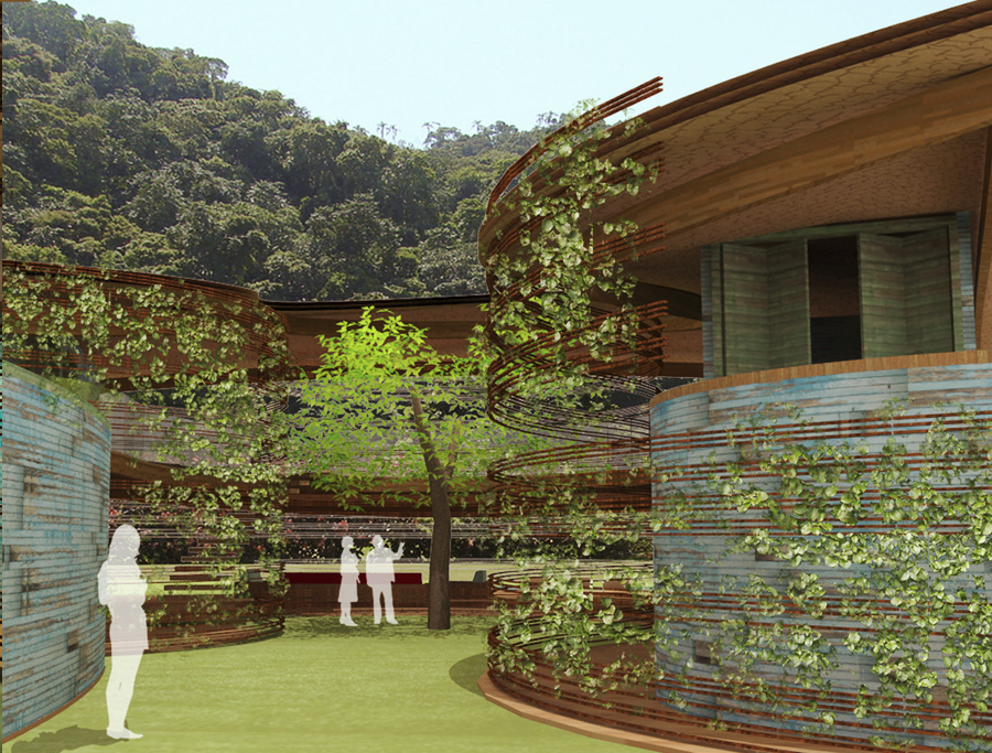 The concept of a “sun protective roof” was used once again, as in the “leaf house”. Prismatic volumes clad in polychromatic wood (a reference to the typical fishing boats of the region) contain all necessary enclosed spaces of the house and are arranged in a way to facilitate free circulation of the sea breeze, providing the house a passive cooling scheme.