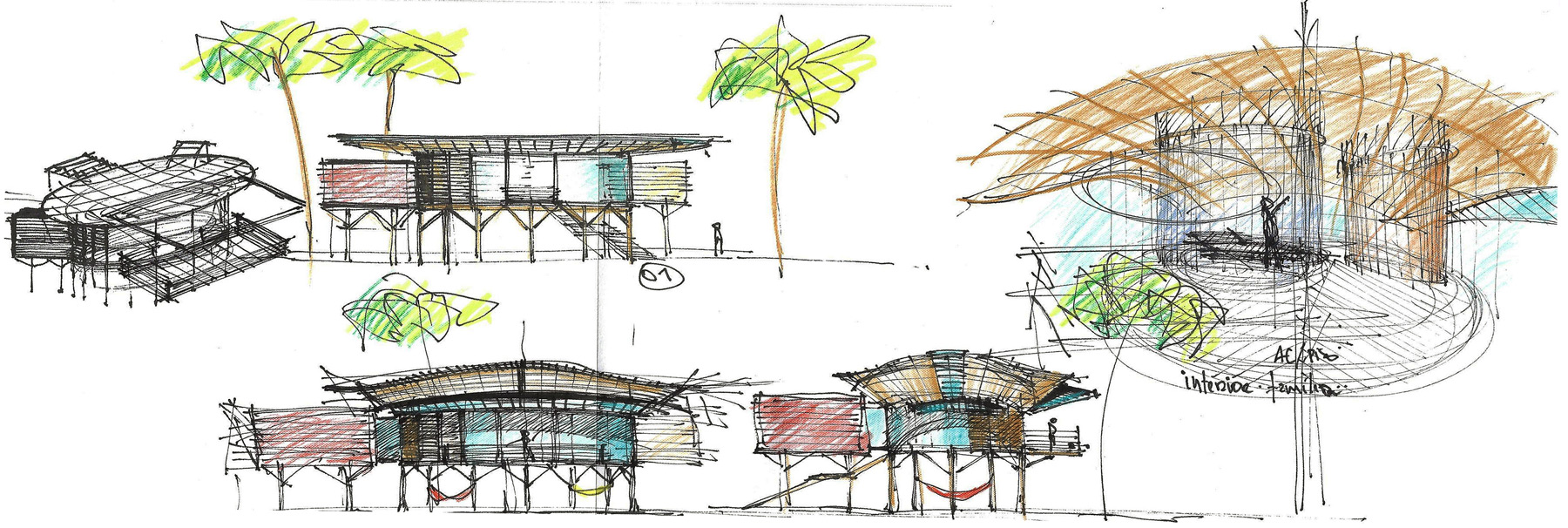 This concept is clearly visible in the juxtaposition of curved and rectilenear volumes. The building sits atop a series os corten steel slender tubes that let nature flow beneath it. Glulam curved beams create a very attractive roof with na organic, natural feel.