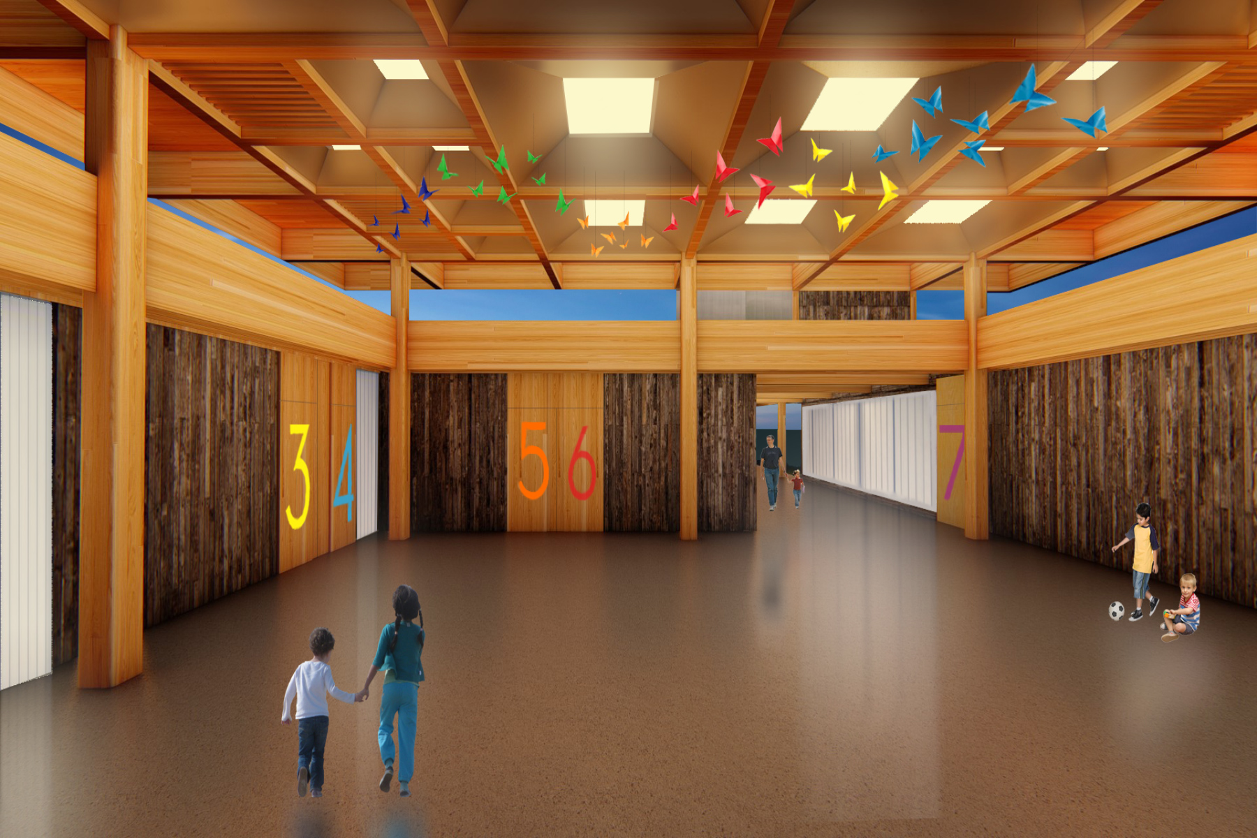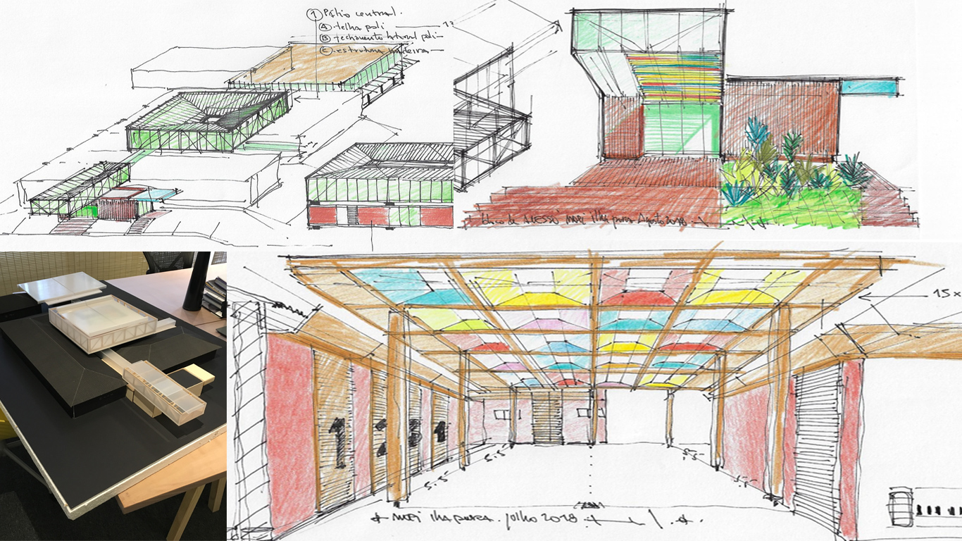 Como essa escola terá uma vida útil curta, precisamos pensar um projeto interessante porém simples e de menor custo do que a sinuosa e icônica unidade da ESCOLA MOPI originalmente projetada por nós 11 anos atrás.